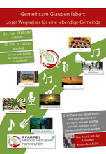 Unsere Pfarrgemeinde hat ein Pastorales Konzept erarbeitet, welches als Grundlage für die Ausrichtung der Gemeindearbeit in den nächsten Jahren genutzt werden soll.